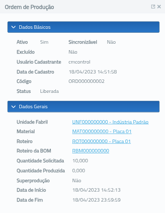 - Permite visão detalhada e rastreável do avanço das ordens.