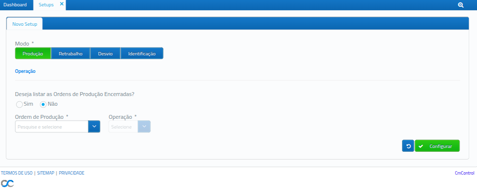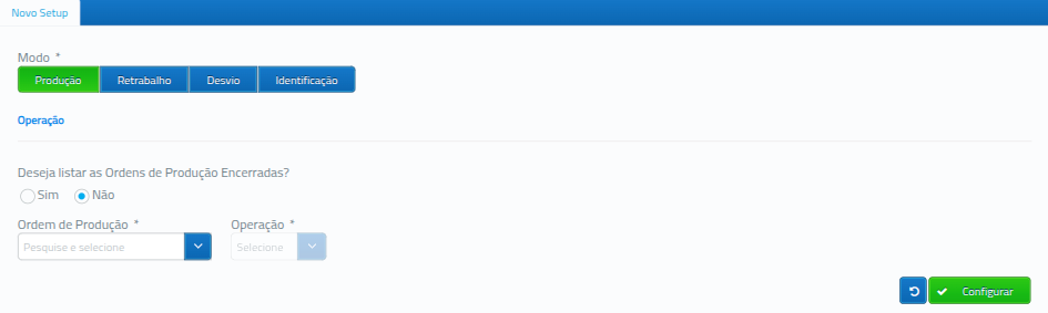 Gestão digital dos tempos e procedimentos de setup (preparação de máquina), com apontamento automático ou manual e controle do status por operação.